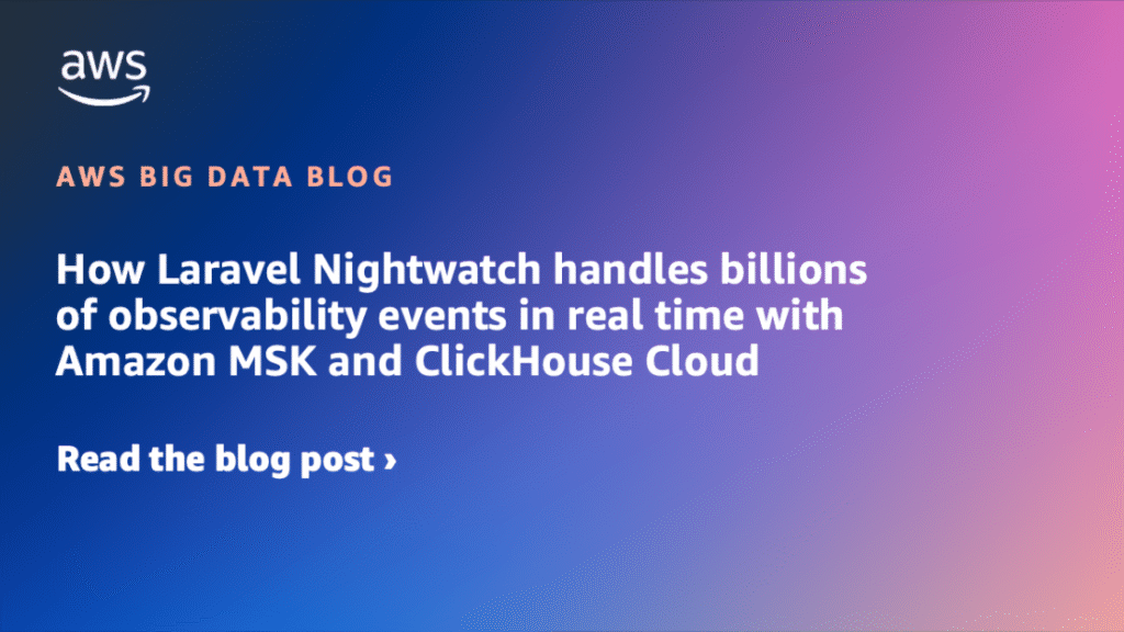Cómo Laravel Nightwatch maneja miles de millones de eventos de observabilidad en tiempo positivo con Amazon MSK y Clickhouse Cloud